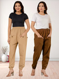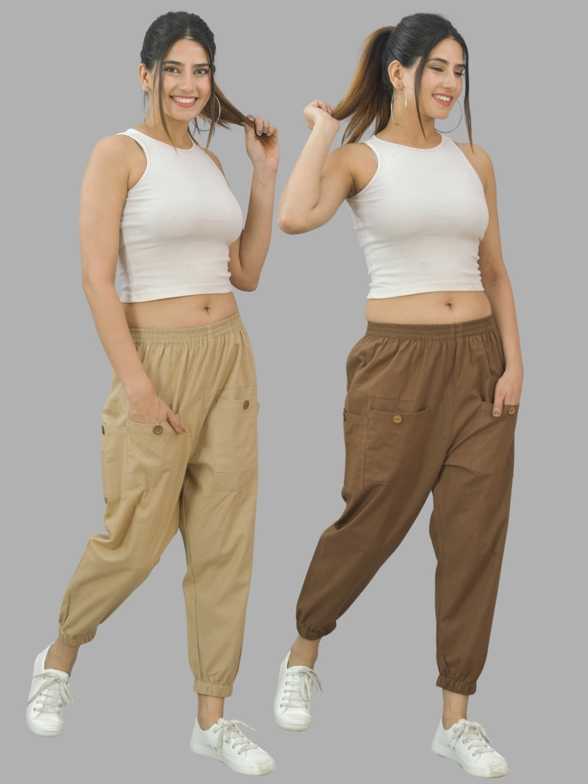 Combo Pack Of Womens Beige And Brown Four Pocket Cotton Cargo Pants