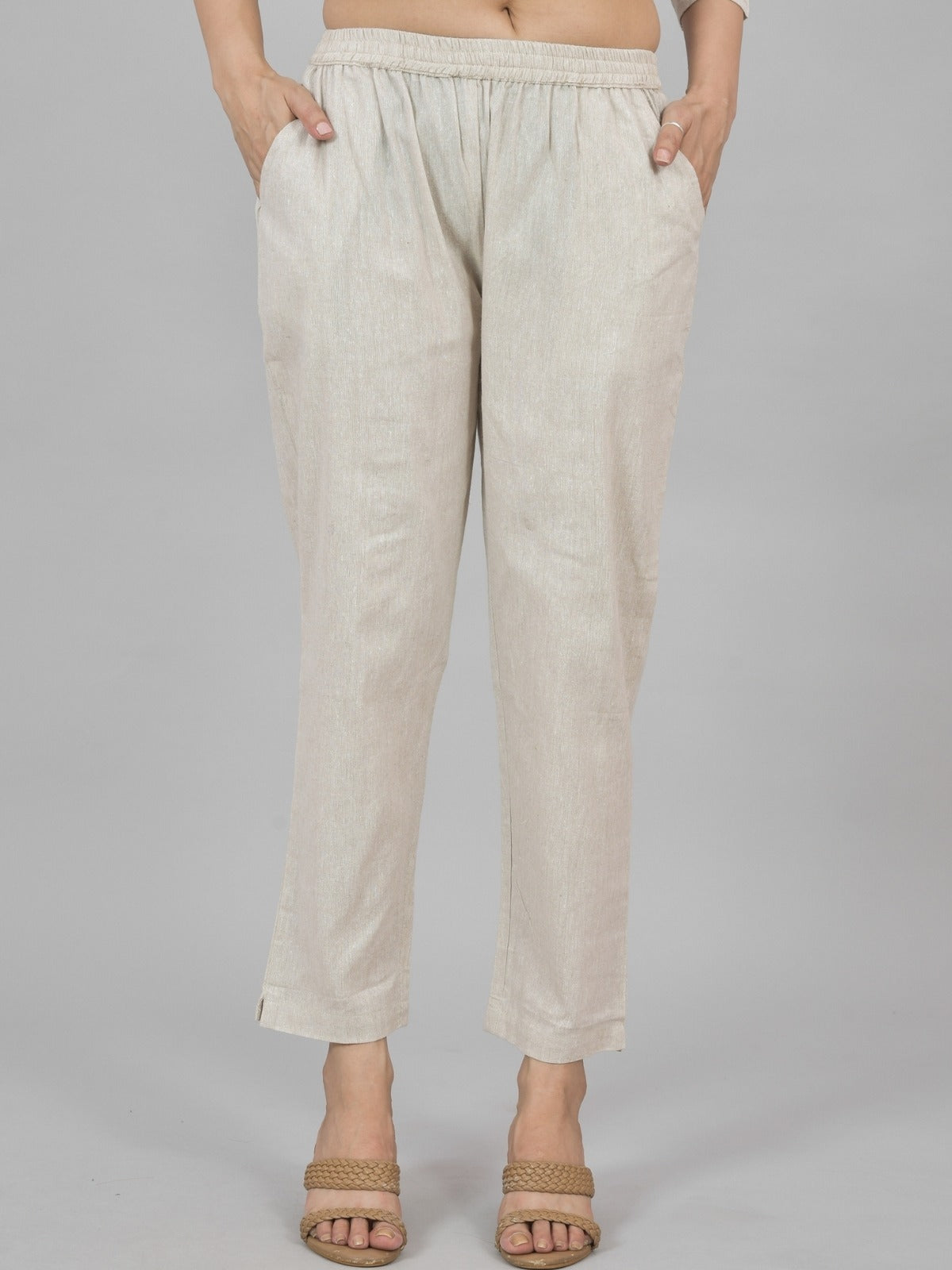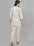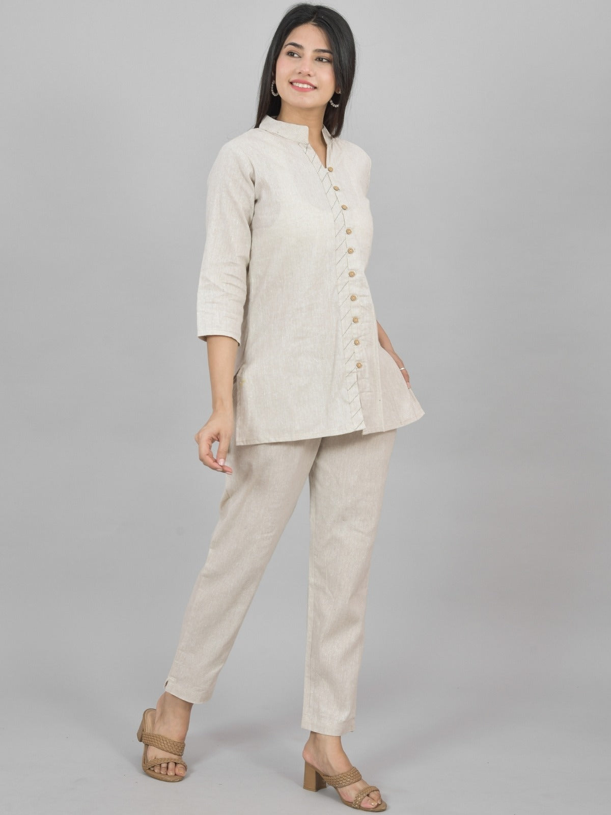 Womens Solid Beige Cotton Top-Pyjama Co-Ords Set