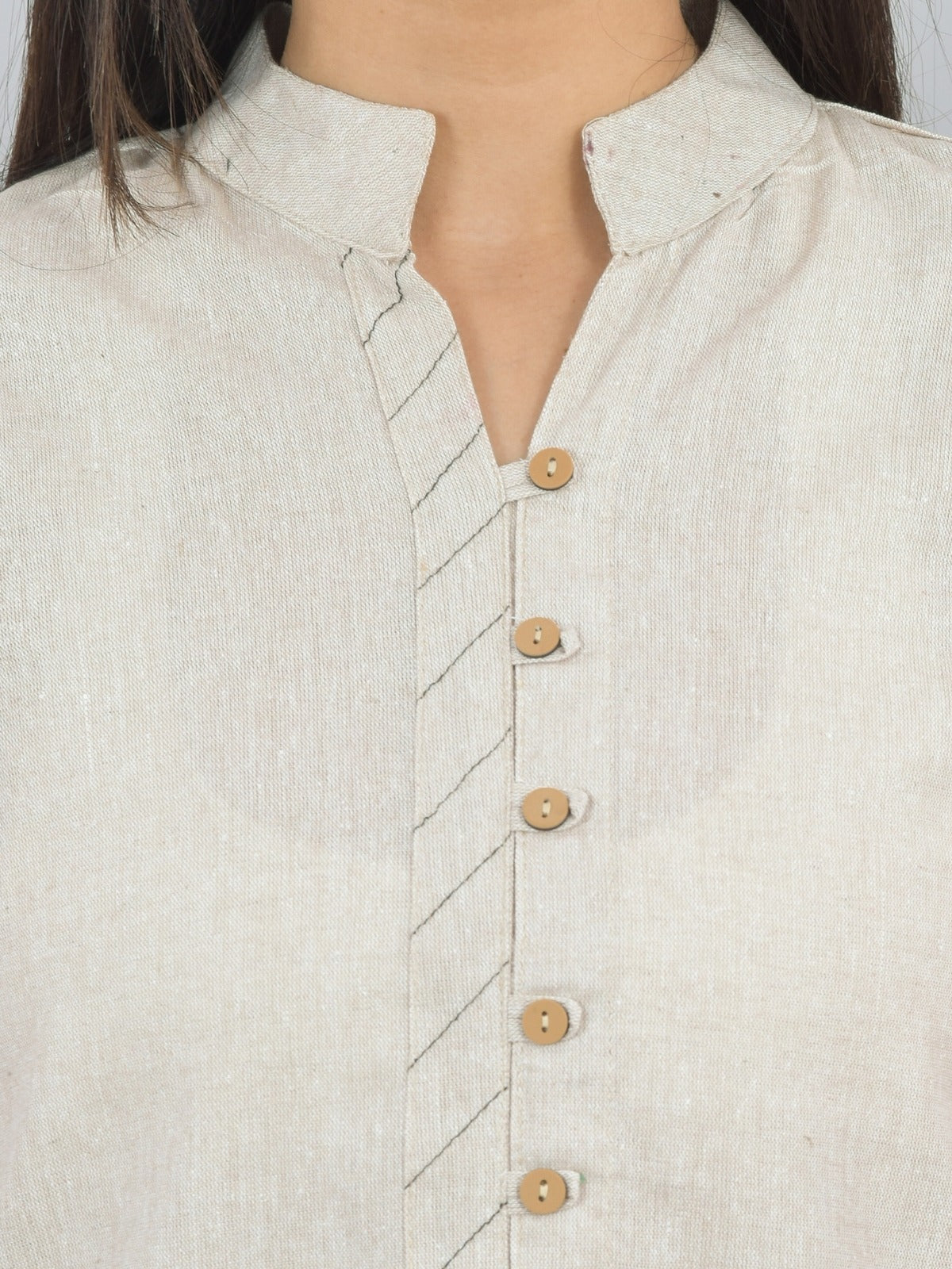 Quaclo Womens Top and Pyjama Co-Ord Set, made of cotton, will upgrade your loungewear. With a front slit for extra flair and wood texture like buttons, this outfit has a stylish mandarin collar with a V-neck design. With its fully elastic waistband for comfort, the bottom gives ease, while the top's 3/4 sleeves add a fashionable touch. With this essential outfit, you may have lavish ease without sacrificing style. This co-ord set skillfully blends comfort and sophistication, making it ideal for both lounging and socialising. Perfect for casual outings or relaxing, the smooth cotton fabric ensures breathability and freedom of movement. With Quaclos' classic style and superb craftsmanship, embrace carefree elegance.
