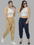 Combo Pack Of Womens Beige And Dark Blue Four Pocket Cotton Cargo Pants