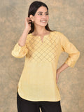 Quaclo Cotton Handloom Yoke Tops for women are designed with a regular fit and made from soft, breathable handloom cotton fabric for all-day comfort and a graceful look. The elegant yoke design adds a stylish and ethnic touch, making these tops perfect for daily wear, office, or casual outings. The solid color and simple pattern make it easy to pair with jeans, leggings, or trousers for a complete and trendy outfit. Shop from a wide range of Cotton Handloom Yoke Tops from Quaclo and upgrade your everyday wardrobe with comfort and style.