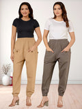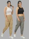 Combo Pack Of Womens Beige And Grey Four Pocket Cotton Cargo Pants