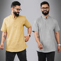 Pack Of 2 Mens Regular Fit Beige And Grey Half Sleeve Cotton Short Kurta Combo