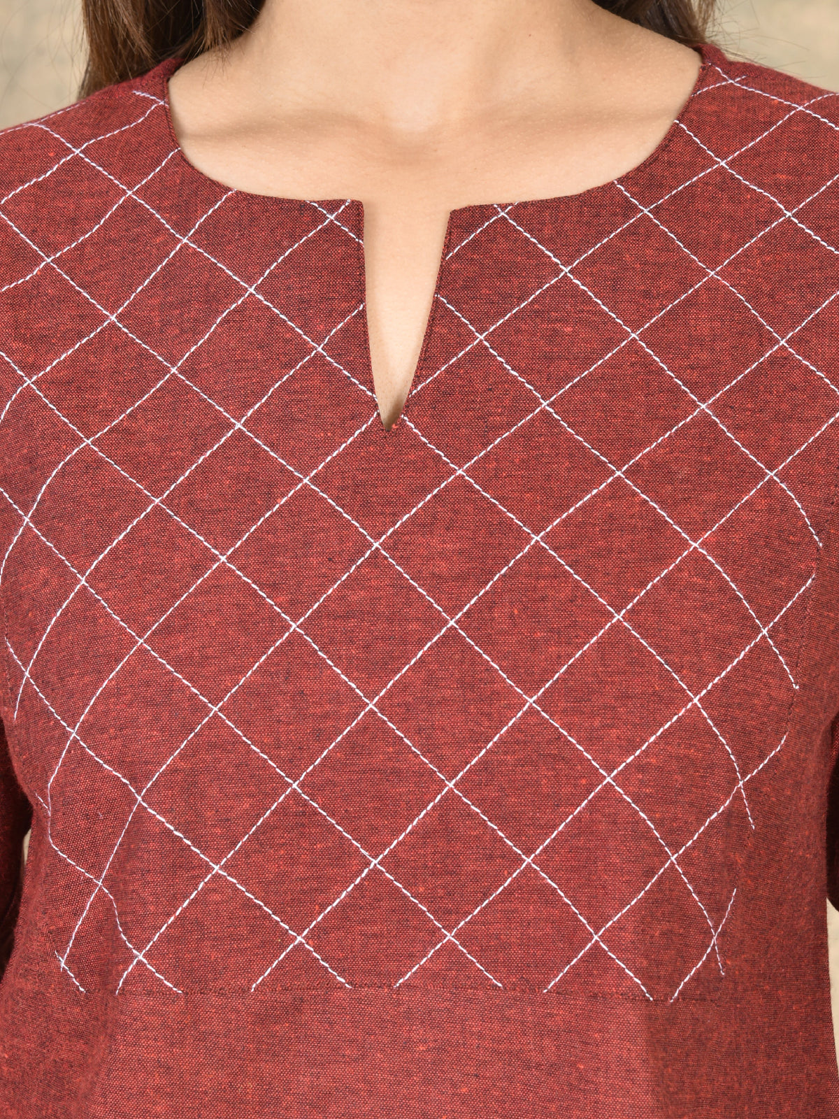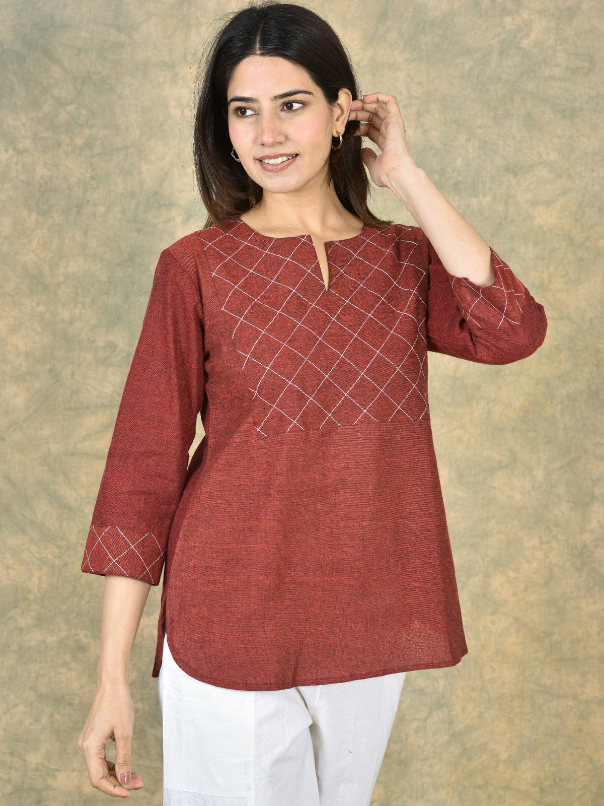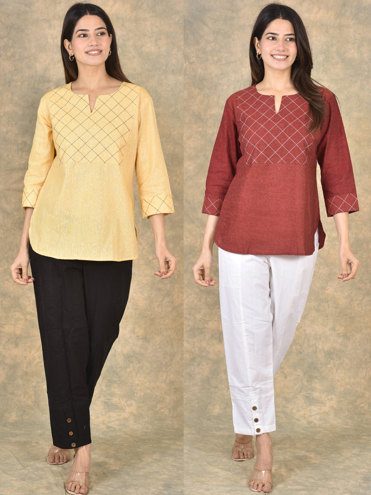Handloom Cotton Yoke Top Combo Pack of 2 – Beige & Maroon