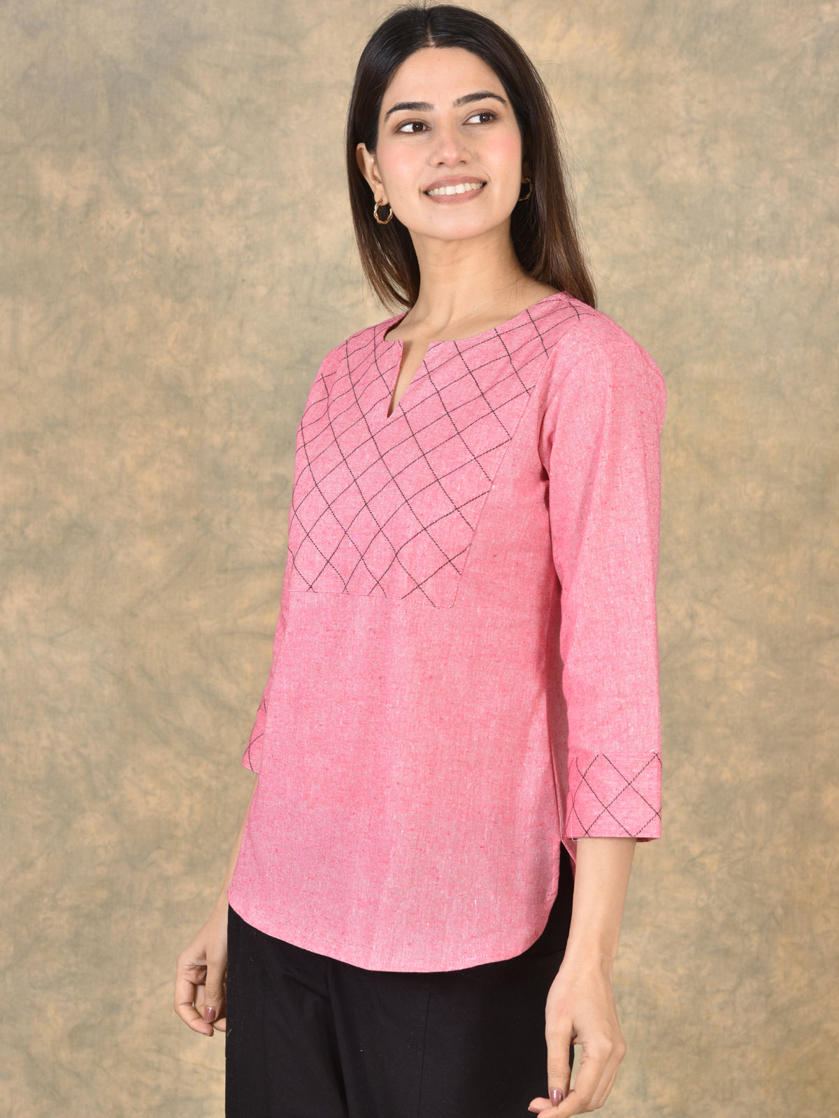 Quaclo Cotton Handloom Yoke Tops for women are designed with a regular fit and made from soft, breathable handloom cotton fabric for all-day comfort and a graceful look. The elegant yoke design adds a stylish and ethnic touch, making these tops perfect for daily wear, office, or casual outings. The solid color and simple pattern make it easy to pair with jeans, leggings, or trousers for a complete and trendy outfit. Shop from a wide range of Cotton Handloom Yoke Tops from Quaclo and upgrade your everyday wardrobe with comfort and style.