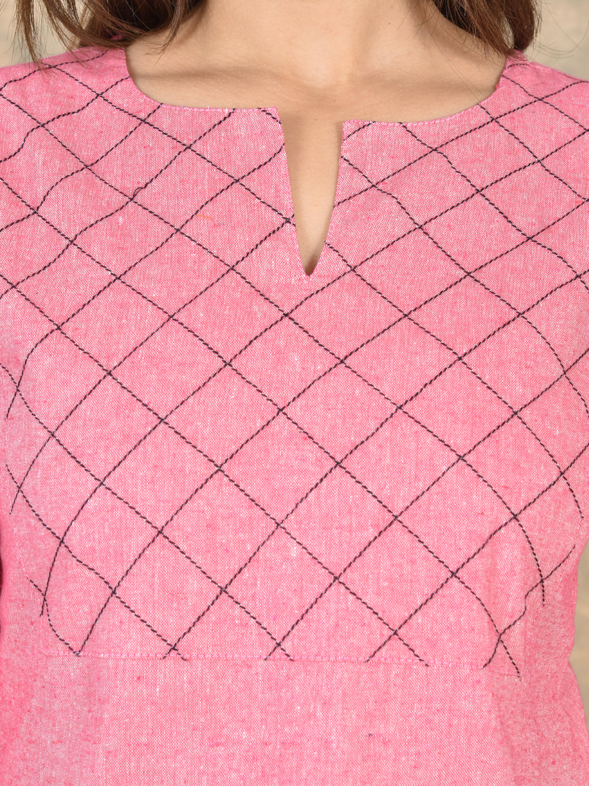 Handloom Cotton Yoke Top Combo Pack of 2 – Beige & Pink