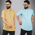 Pack Of 2 Mens Regular Fit Beige And Sky Blue Half Sleeve Cotton Short Kurta Combo