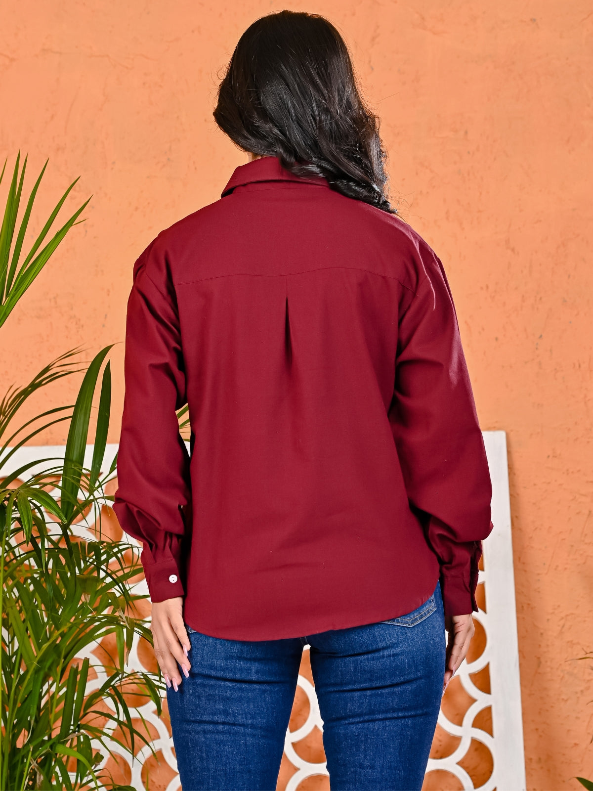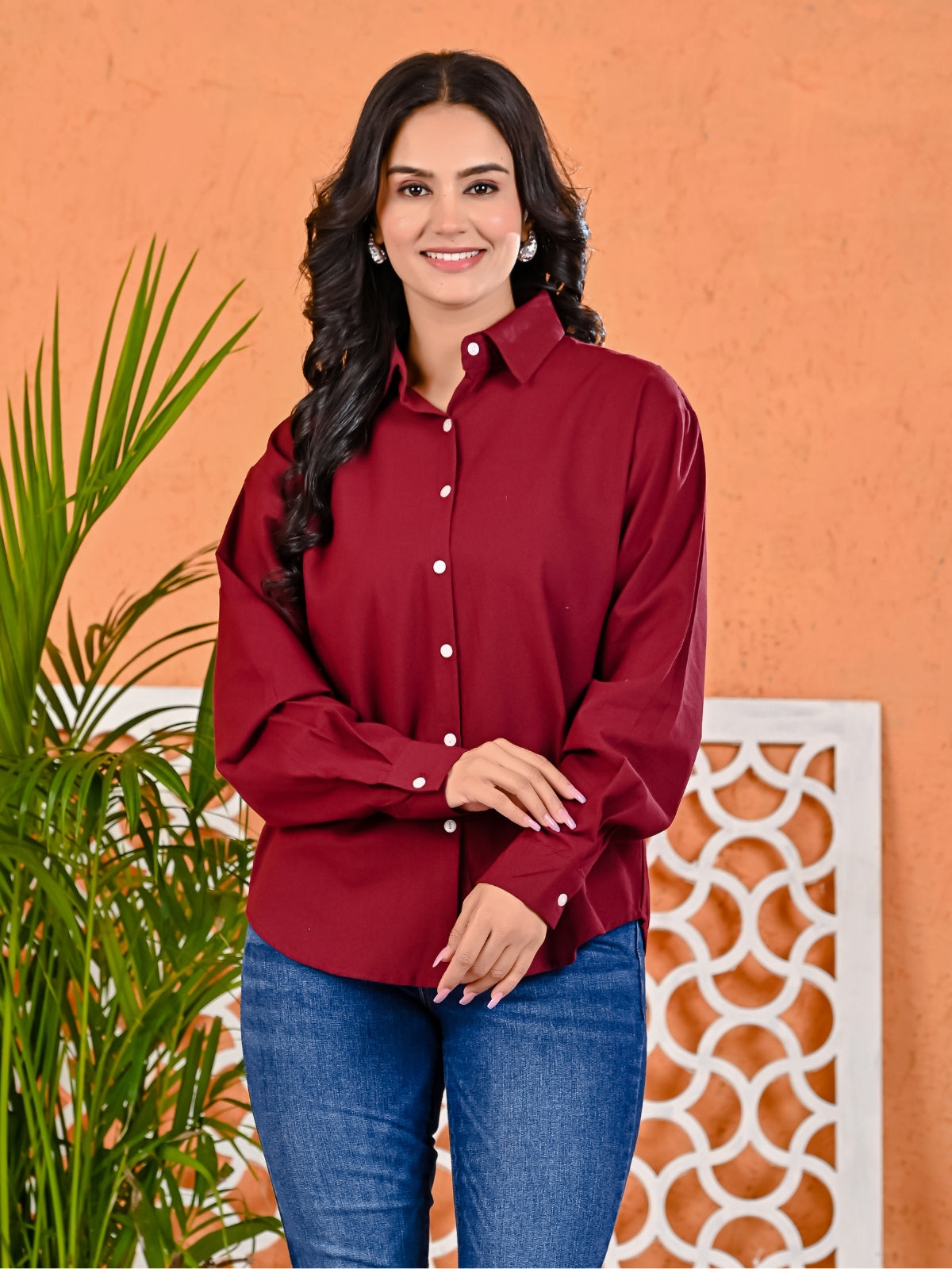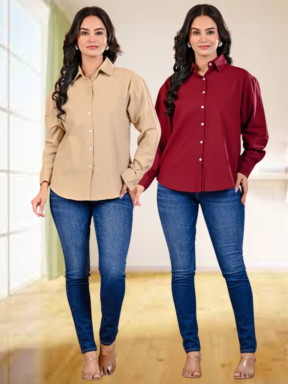 Pack Of 2 Womens Beige And Wine Cotton Loose Fit Shirt Combo