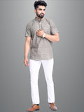 Mens Regular Fit Biscuit Grey and Black Half Sleeve Cotton Short Kurta Combo