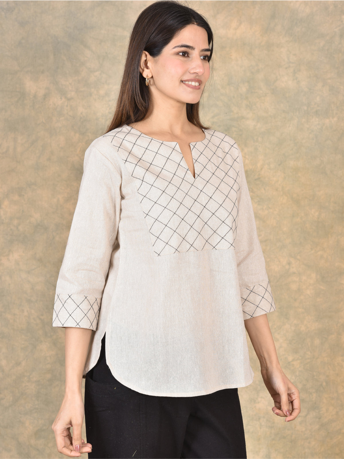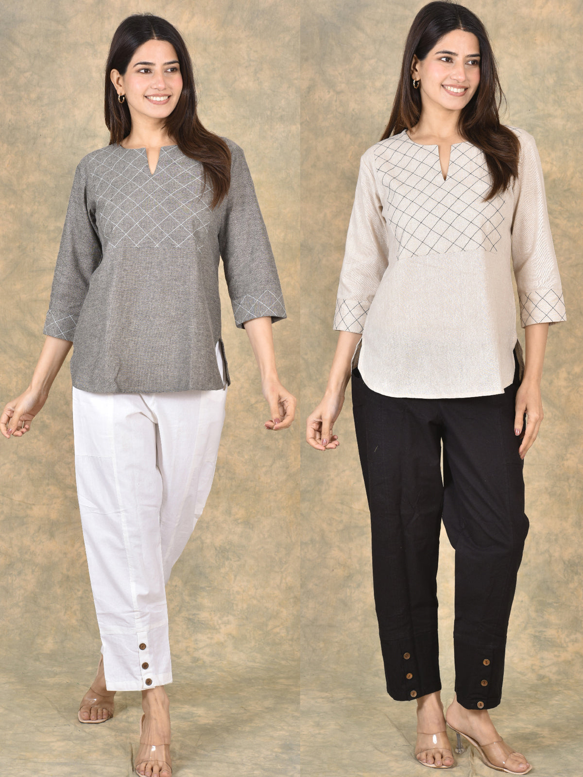 Handloom Cotton Yoke Top Combo Pack of 2 – Biscuit & Cream