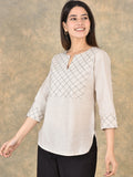 Quaclo Cotton Handloom Yoke Tops for women are designed with a regular fit and made from soft, breathable handloom cotton fabric for all-day comfort and a graceful look. The elegant yoke design adds a stylish and ethnic touch, making these tops perfect for daily wear, office, or casual outings. The solid color and simple pattern make it easy to pair with jeans, leggings, or trousers for a complete and trendy outfit. Shop from a wide range of Cotton Handloom Yoke Tops from Quaclo and upgrade your everyday wardrobe with comfort and style.
