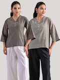 Pack Of 2 Biscuit And Ocian Blue Handloom Cotton Anchor Thread Designer Tops