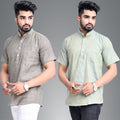 Mens Regular Fit Biscuit Grey and Ocian Blue Half Sleeve Cotton Short Kurta Combo