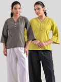 Pack Of 2 Biscuit And Parrot Green Handloom Cotton Anchor Thread Designer Tops