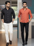 These stylish men's Airy linen shirts Combo with a solid color design will give your outfit a timeless, sophisticated touch. This full-sleeve shirt is perfect for both formal and casual settings because of its durability and all-day comfort. The spread collar adds a sophisticated touch, and the button closure ensures a neat fit. Made from a high-quality linen fabric, this shirt's soft feel and breathability make it ideal for year-round wear. Wear it with pants for a polished office look or jeans for a laid-back weekend outing. This multipurpose shirt is a wardrobe essential for the modern man and is available in a variety of sizes.