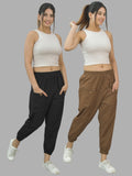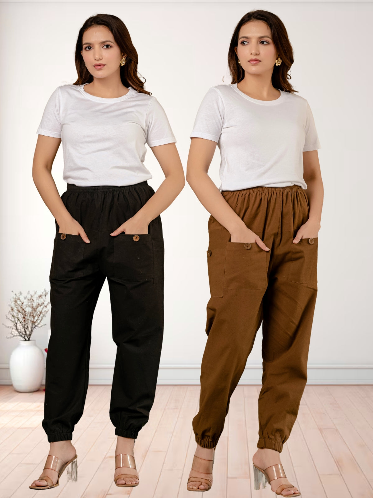 Combo Pack Of Womens Black And Brown Four Pocket Cotton Cargo Pants
