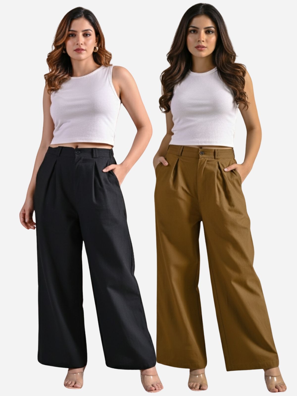 Pack Of 2 Black And Brown Women Cotton Wide Leg Pants