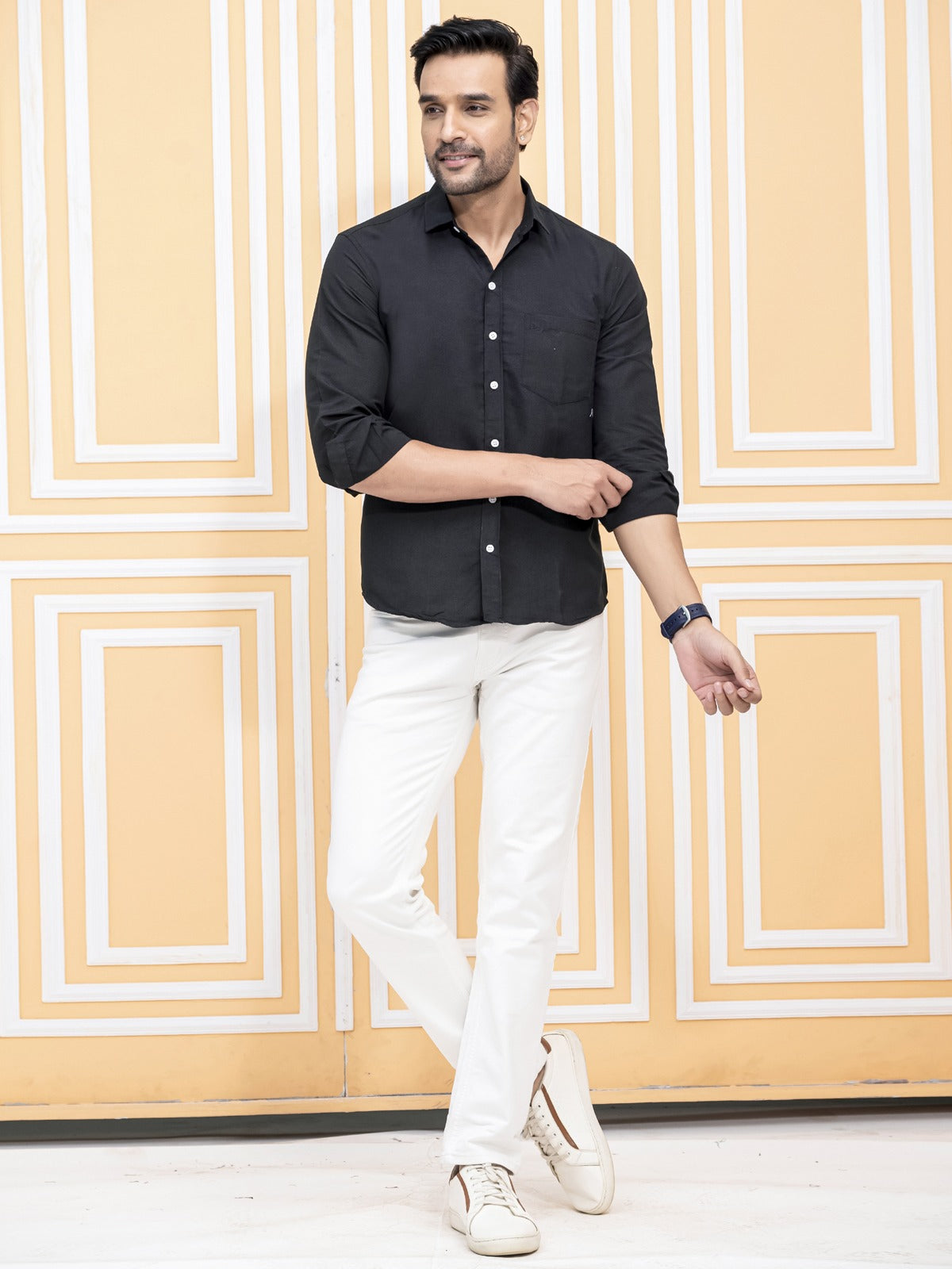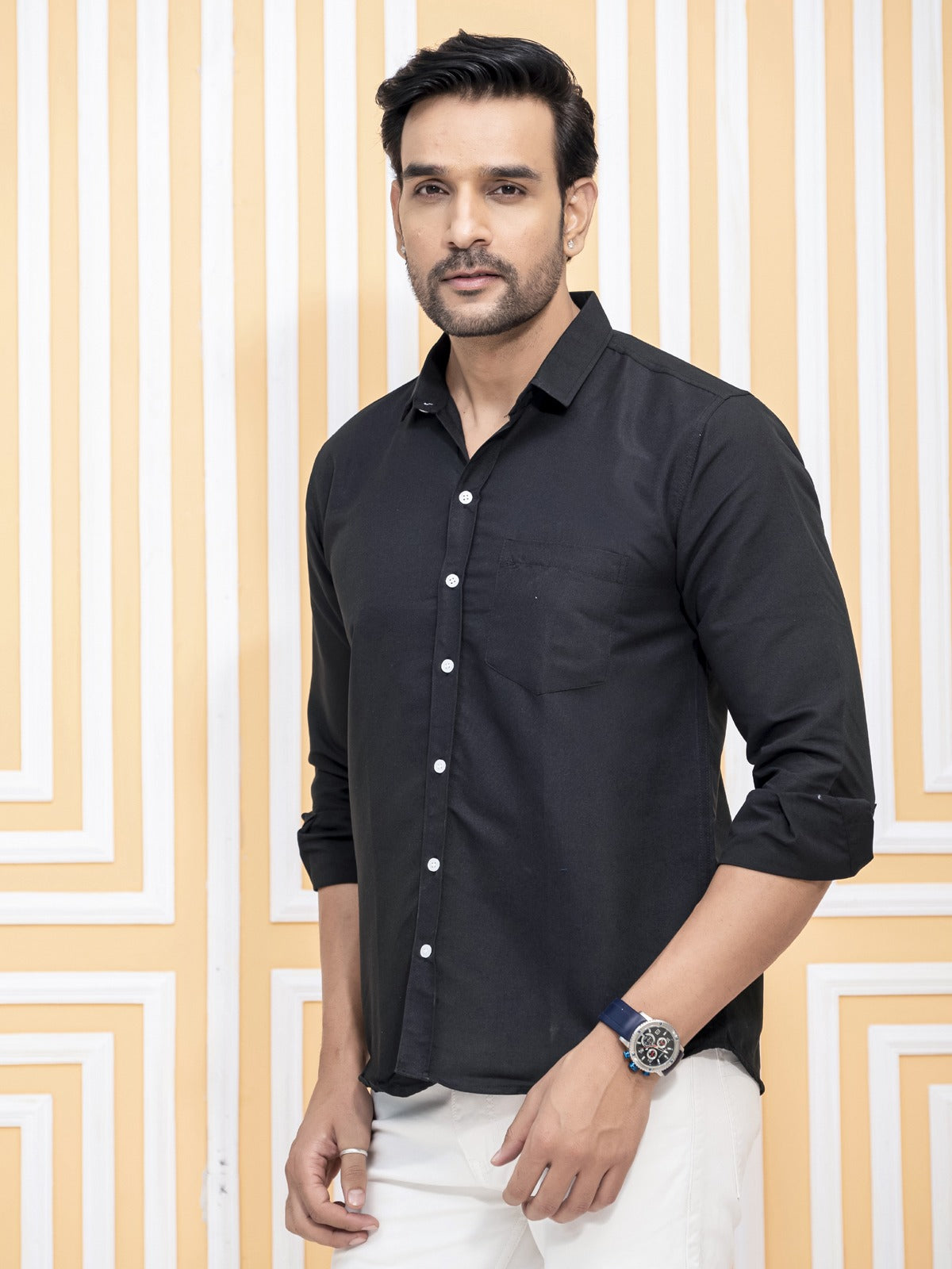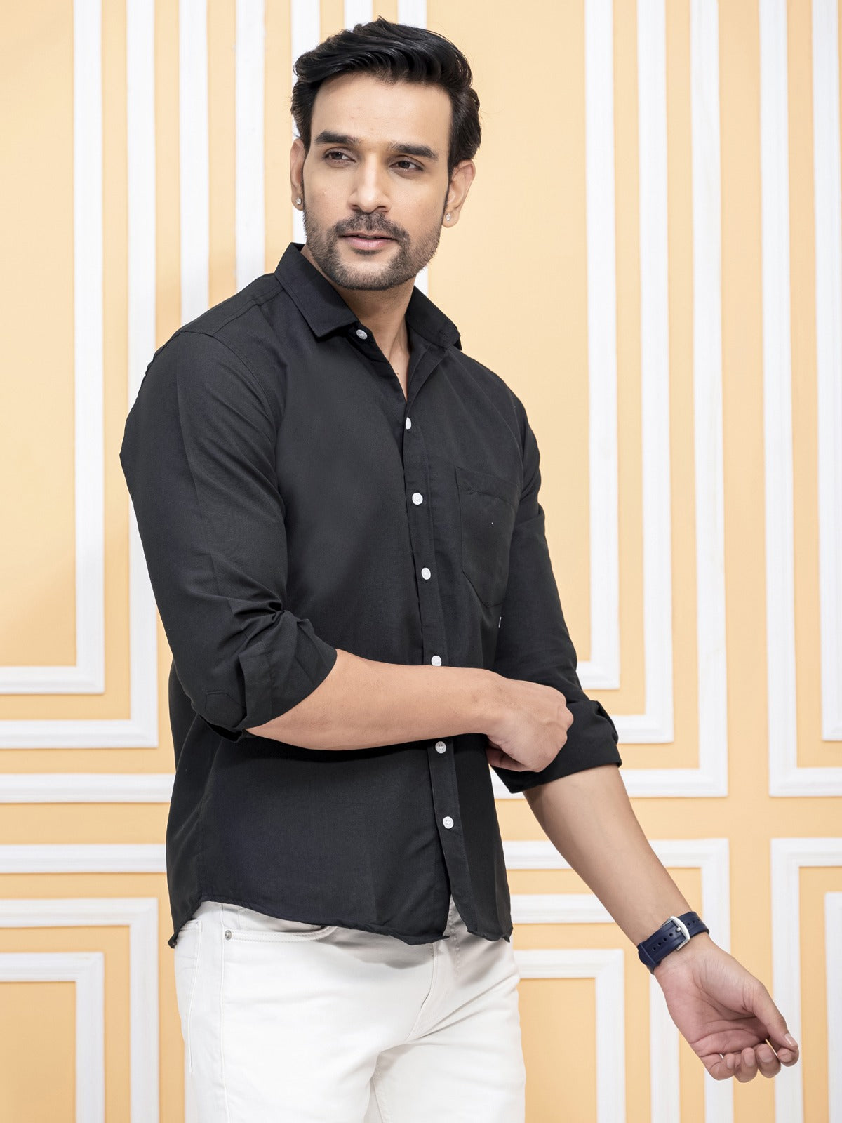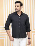 Mens Solid Black Full Sleeve Cotton Blend Shirt