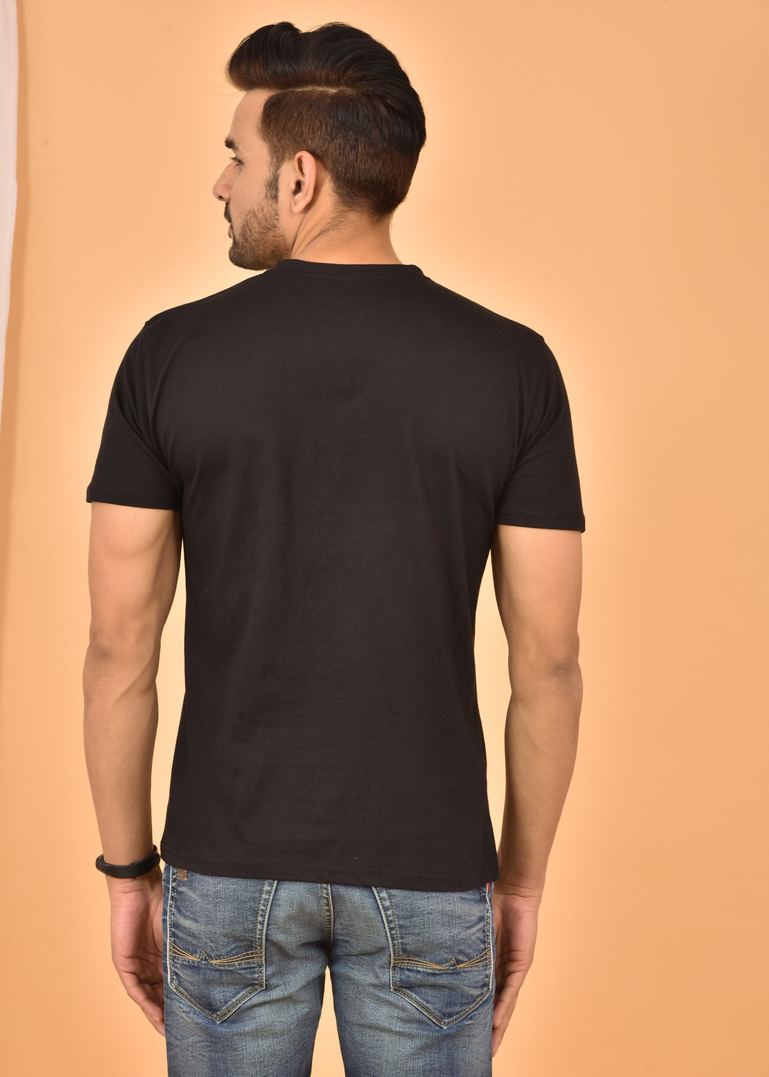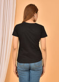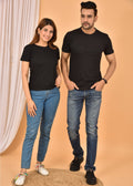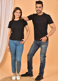 Couple Black Round Neck Cotton Blend Plain T-shirt Set