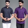 Mens Regular Fit Black and Dark Purple Half Sleeve Cotton Short Kurta Combo