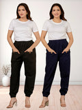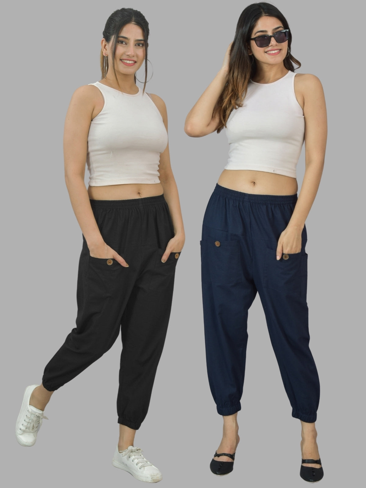 Combo Pack Of Womens Black And Dark Blue Four Pocket Cotton Cargo Pants