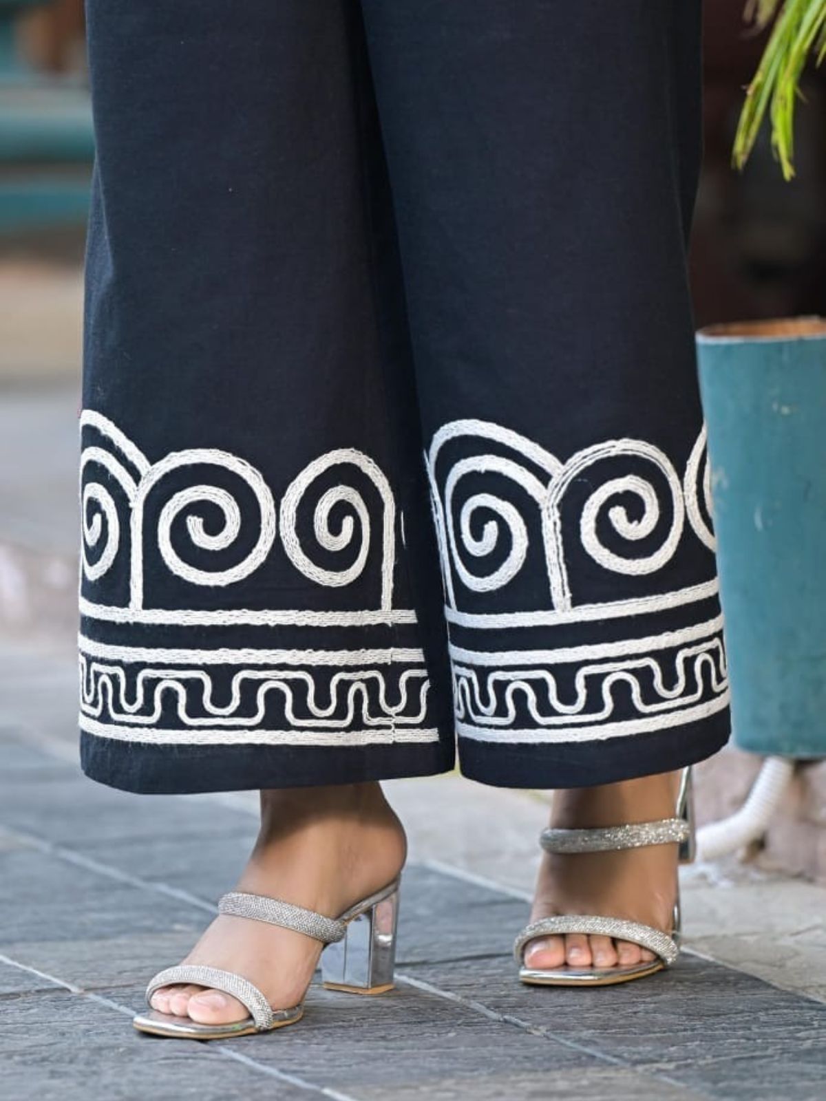 This beautiful women's cotton embroidery co-ord set will add flair to your wardrobe and be perfect for both casual get-togethers and parties. The half-sleeve top of this elegant set is perfectly embroidered and made of breathable, soft cotton. A sophisticated touch is added to your appearance with the top's fashionable spread collar design. All day long comfort and style are provided by the full-length bottom, which perfectly matches the top. This cotton co-ord set is perfect for warm weather because it keeps you cool while still looking stylish. the occasion, whether you're going to brunch, a party, or an easy day out, this flexible ensemble guarantees that you look effortlessly stylish. For a full look, pair it with your favorite heels or flats and a few simple accessories.