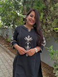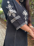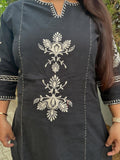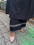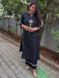 Quaclo Womens Black Embroidery Kurta Plazzo Set