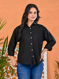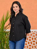 This women's loose-fitting cotton shirt, which can be used to formal events as well as casual settings, will add flair to your wardrobe. This shirt's soft, breathable cotton design guarantees all-day comfort without compromising style. It combines classic style with everyday ease thanks to its full sleeves, button-down closure, and classic spread collar. All body shapes benefit from its easy movement and relaxed fit, which makes it ideal for arranging in any season or for the workplace or weekend tours. Wear it with pants for a dressier look or jeans for a more relaxed vibe. Any modern woman's wardrobe must include this adaptable button-up cotton shirt. Easy to maintain and perfect for year-round wear.