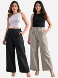 Pack Of 2 Black And Melange Grey Women Cotton Wide Leg Pants