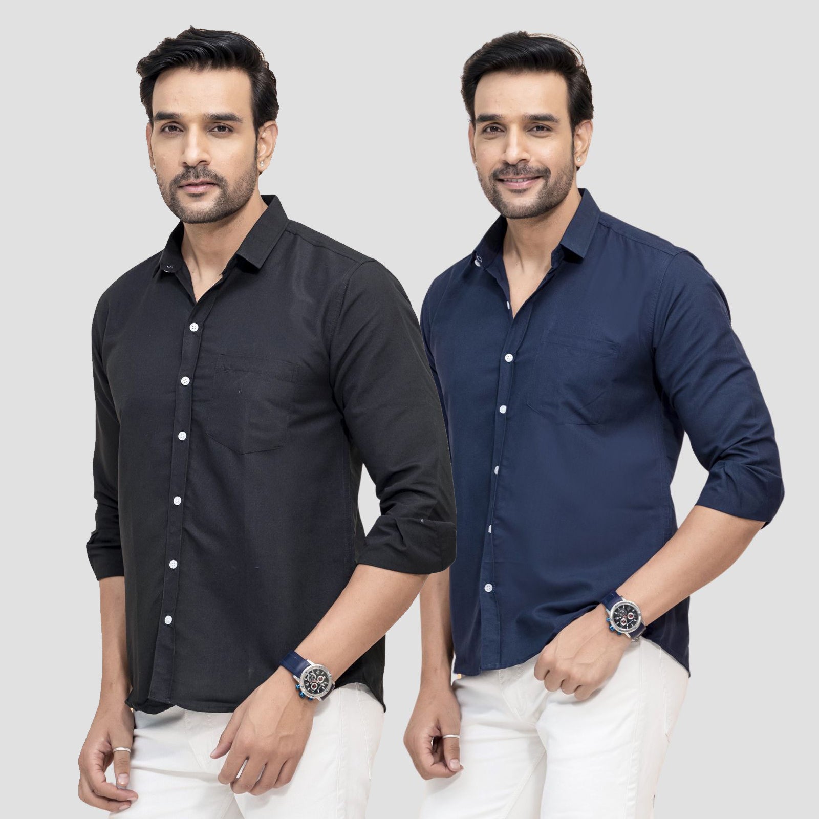 These stylish men's Airy linen shirts Combo with a solid color design will give your outfit a timeless, sophisticated touch. This full-sleeve shirt is perfect for both formal and casual settings because of its durability and all-day comfort. The spread collar adds a sophisticated touch, and the button closure ensures a neat fit. Made from a high-quality linen fabric, this shirt's soft feel and breathability make it ideal for year-round wear. Wear it with pants for a polished office look or jeans for a laid-back weekend outing. This multipurpose shirt is a wardrobe essential for the modern man and is available in a variety of sizes.