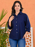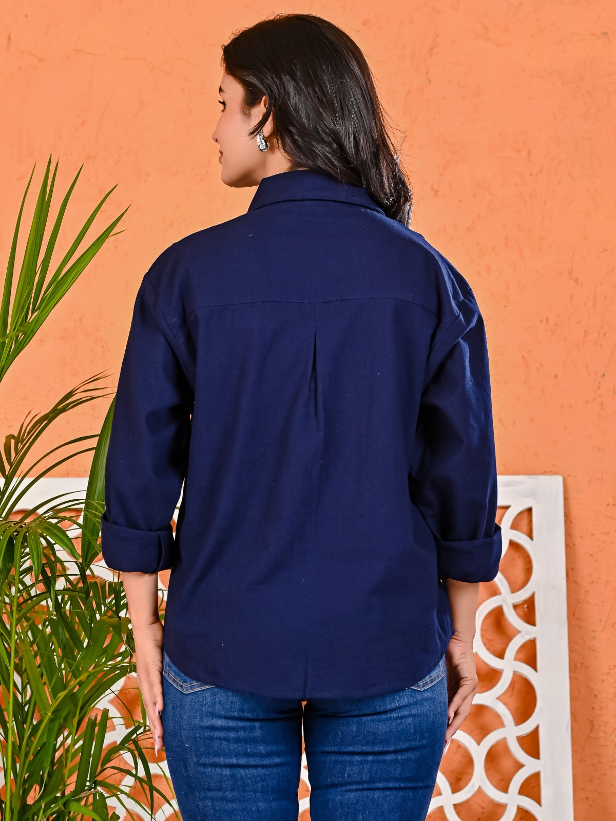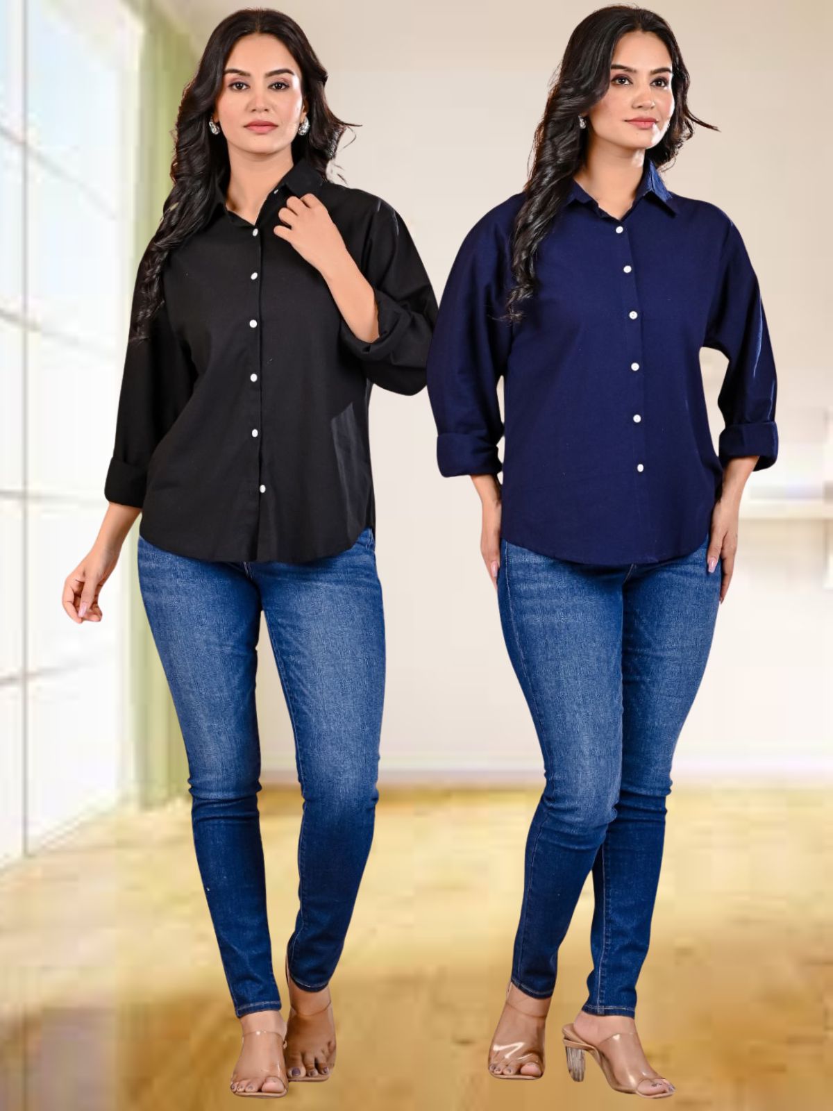 Pack Of 2 Womens Black And Navy Blue Cotton Loose Fit Shirt Combo