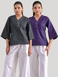 Pack Of 2 Black And Purple Handloom Cotton Anchor Thread Designer Tops