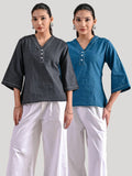 Pack Of 2 Black And Teal Blue Handloom Cotton Anchor Thread Designer Tops
