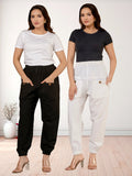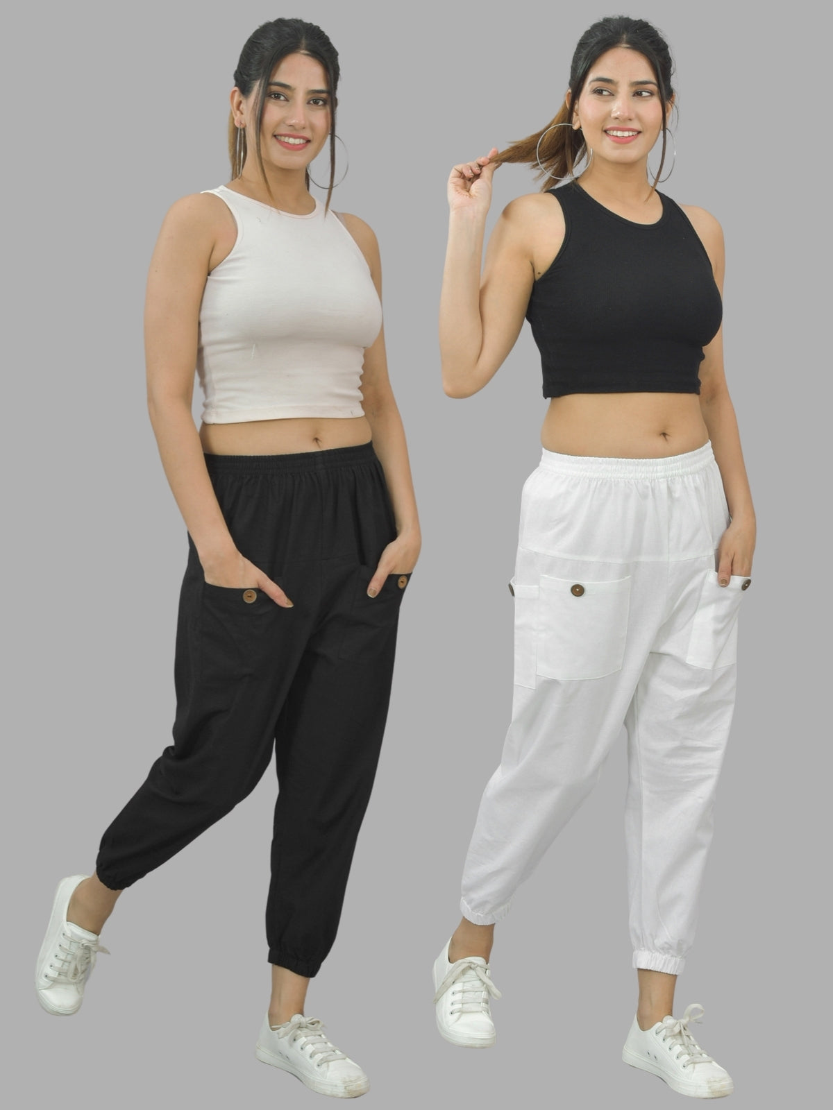 Combo Pack Of Womens Black And White Four Pocket Cotton Cargo Pants