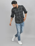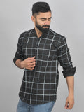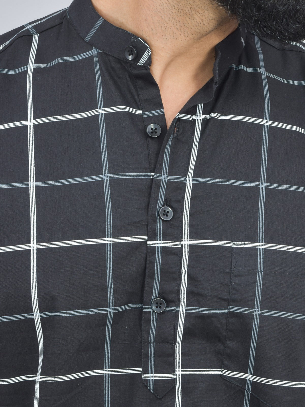 Quaclo Mens Black Wide Check Cotton Short Kurta