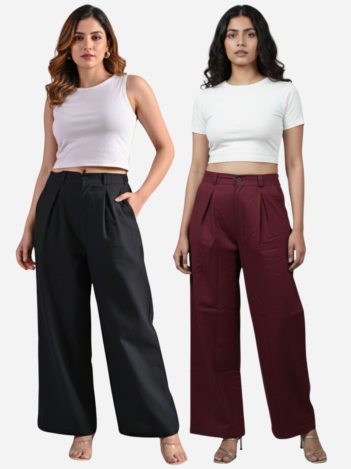 Pack Of 2 Black And Wine Women Cotton Wide Leg Pants