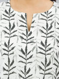 Womens Regular Fit Black Leaf Printed Short Kurti/Top