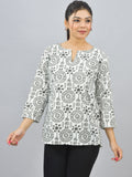 Womens Regular Fit Black Tribal Printed Short Kurti/Top