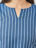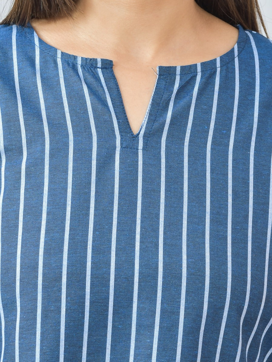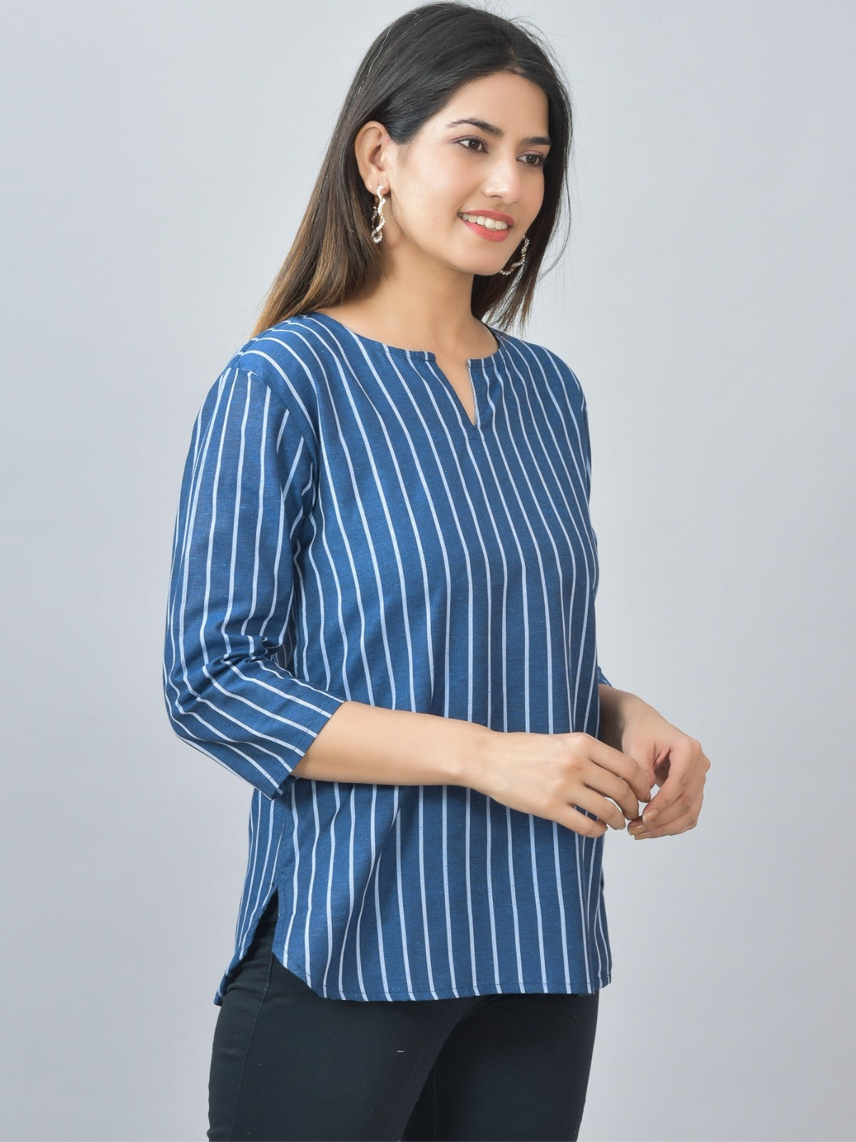 Womens Regular Fit Dark Blue Single Stripe Cotton Top