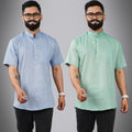 Pack Of 2 Mens Regular Fit Blue And Green Half Sleeve Cotton Short Kurta Combo