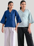 Pack Of 2 Blue And Ice Blue Handloom Cotton Anchor Thread Designer Tops