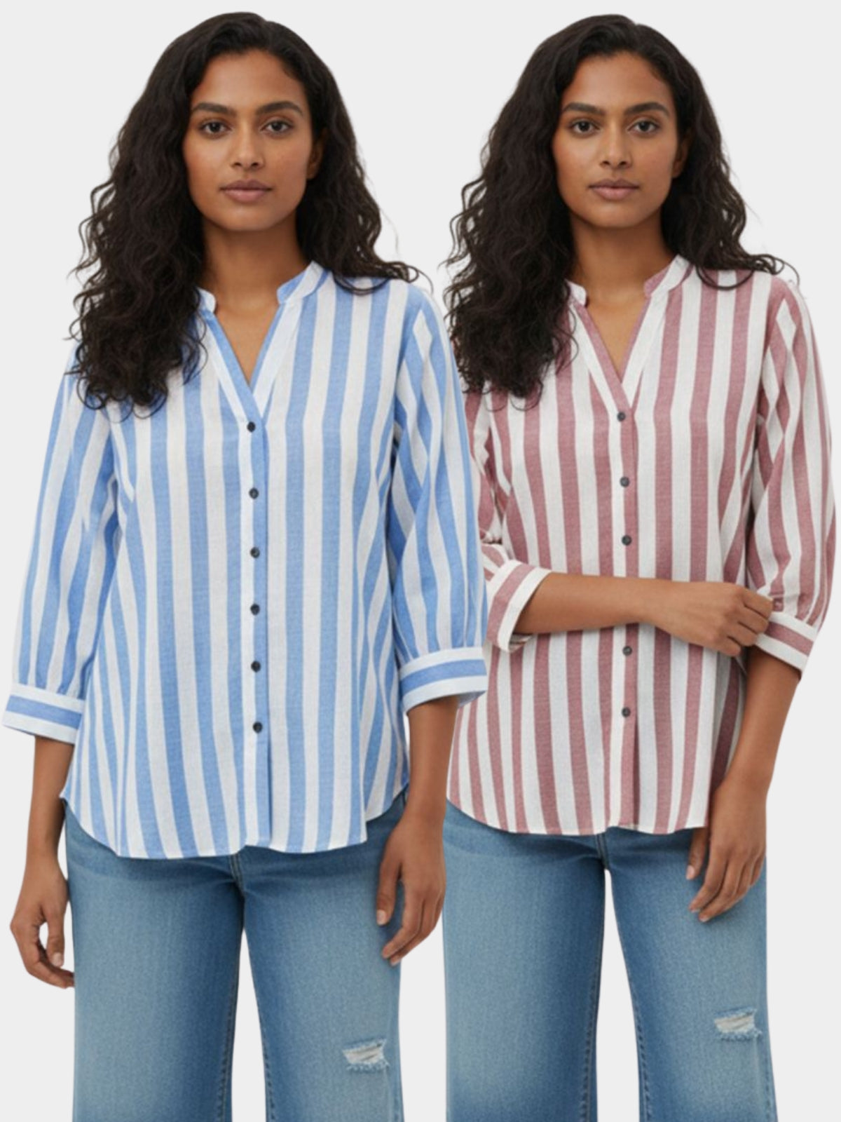 Discover effortless elegance with our Women’s Stripe Shirt featuring stylish shoulder pleats, 3/4th sleeves, and a classic button closure. Designed for both comfort and sophistication, this hip-length shirt offers a flattering fit for any occasion. Crafted from soft, breathable fabric, it blends timeless stripes with modern detailing, making it perfect for office wear or casual outings. Pair it with trousers or jeans for a chic, polished look that enhances your everyday style effortlessly.