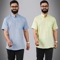 Pack Of 2 Mens Regular Fit Blue And Parrot Green Half Sleeve Cotton Short Kurta Combo