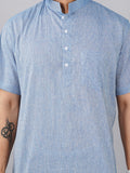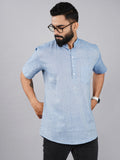 Solid Blue Cotton Regular Fit Short Kurta