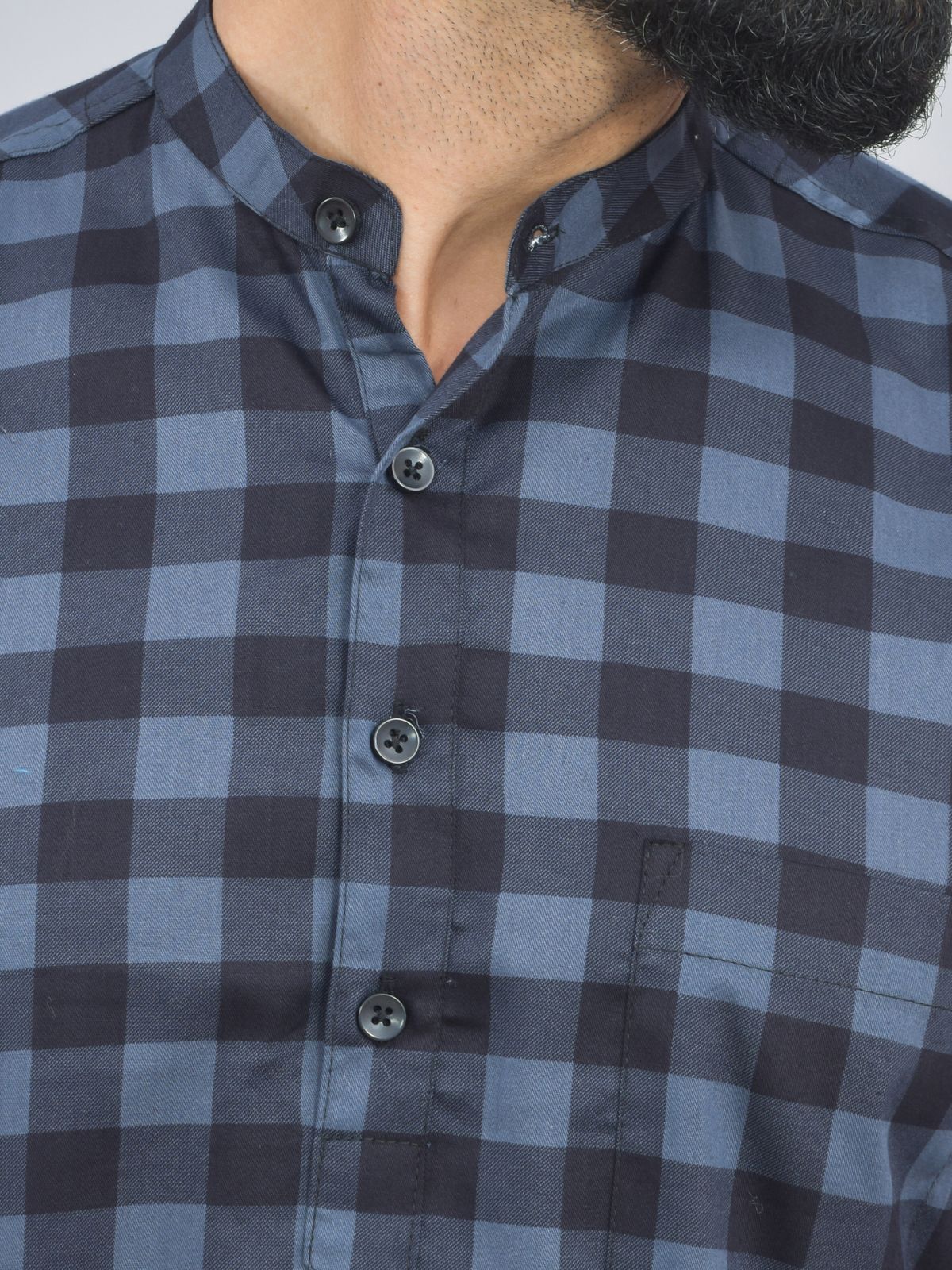 Explore classic fashion with our newest Mens Full Sleeve Short Kurta. This beautifully made kurta with small checks will elevate your wardrobe. The mandarin collar gives an updated touch that strikes the ideal blend between personalised and modern style. This carefully crafted cotton kurta guarantees breathability all day long. In addition to improving functionality, the well-considered addition of a chest pocket gives the entire design a fashionable touch. Enjoy this kurta's versatility as it can be worn to semi-formal and casual events. It becomes a focal point in your collection with the slight flair added by the curved hem. With this essential wardrobe piece, you can up your style bar. Shop now to reinvent your look with our Kurtas, which seamlessly combine style with ease.