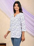 Womens Regular Fit Blue Vactor Printed Short Kurti/Top