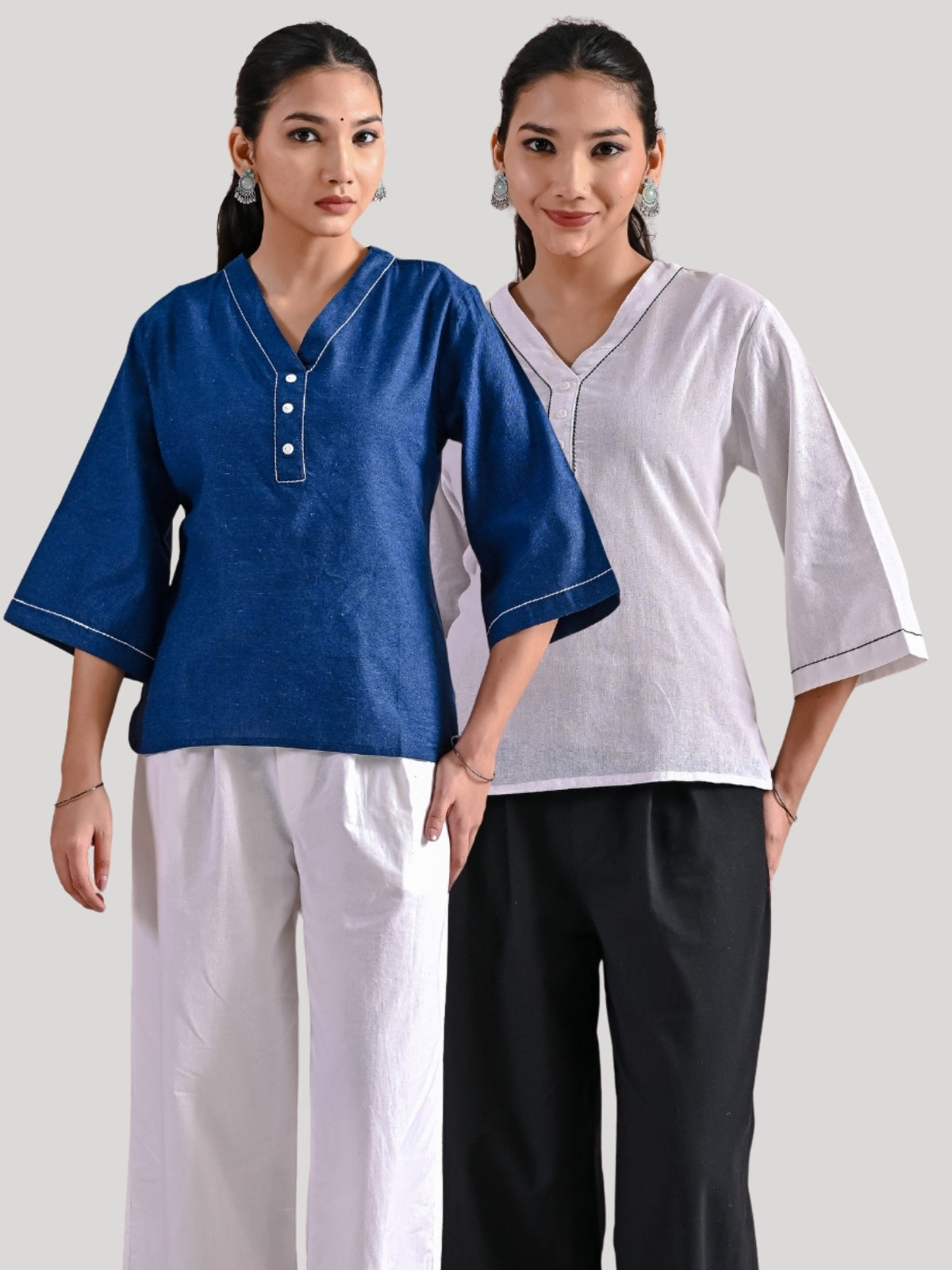 Pack Of 2 Blue And White Handloom Cotton Anchor Thread Designer Tops