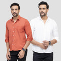 These stylish men's Airy linen shirts Combo with a solid color design will give your outfit a timeless, sophisticated touch. This full-sleeve shirt is perfect for both formal and casual settings because of its durability and all-day comfort. The spread collar adds a sophisticated touch, and the button closure ensures a neat fit. Made from a high-quality linen fabric, this shirt's soft feel and breathability make it ideal for year-round wear. Wear it with pants for a polished office look or jeans for a laid-back weekend outing. This multipurpose shirt is a wardrobe essential for the modern man and is available in a variety of sizes.