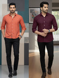 These stylish men's Airy linen shirts Combo with a solid color design will give your outfit a timeless, sophisticated touch. This full-sleeve shirt is perfect for both formal and casual settings because of its durability and all-day comfort. The spread collar adds a sophisticated touch, and the button closure ensures a neat fit. Made from a high-quality linen fabric, this shirt's soft feel and breathability make it ideal for year-round wear. Wear it with pants for a polished office look or jeans for a laid-back weekend outing. This multipurpose shirt is a wardrobe essential for the modern man and is available in a variety of sizes.