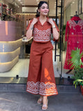 This beautiful women's cotton embroidery co-ord set will add flair to your wardrobe and be perfect for both casual get-togethers and parties. The half-sleeve top of this elegant set is perfectly embroidered and made of breathable, soft cotton. A sophisticated touch is added to your appearance with the top's fashionable spread collar design. All day long comfort and style are provided by the full-length bottom, which perfectly matches the top. This cotton co-ord set is perfect for warm weather because it keeps you cool while still looking stylish. the occasion, whether you're going to brunch, a party, or an easy day out, this flexible ensemble guarantees that you look effortlessly stylish. For a full look, pair it with your favorite heels or flats and a few simple accessories.